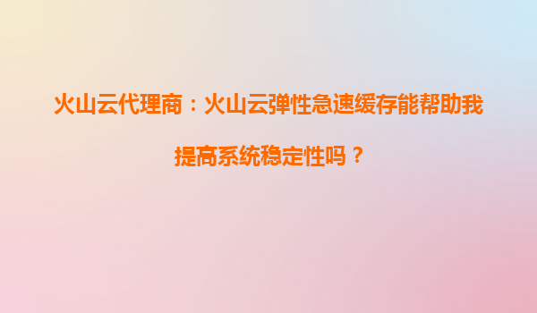 2025-09-20火山云弹性急速缓存如何提升系统稳定性?代理商详解核心优势 一、理解标题关键词:系统稳定性与火山云解决方案的关系 标题"火山云弹性急速缓存能帮助我提高系统稳定性吗?"聚焦三个关键点:首先是技术产品——...
