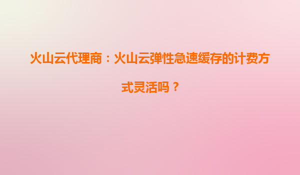 2025-09-19火山云代理商:火山云弹性急速缓存的计费方式灵活吗? 一、火山云弹性急速缓存的计费方式有多灵活? 火山引擎作为字节跳动旗下的云计算服务品牌,其火山云弹性急速缓存服务在设计之初就充分考虑了用户需求,提...