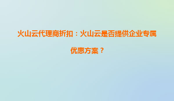 2025-09-19火山云代理商折扣政策详解:企业专属优惠方案助力降本增效 火山云代理体系的价值定位 作为国内领先的云计算服务提供商,火山云通过完善的代理商体系为企业客户提供本地化服务支持。其代理商网络覆盖全...