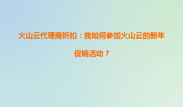 2025-09-19火山云代理商折扣:如何参加火山云新年促销活动 一、火山云的优势与新年促销背景 火山云是字节跳动旗下的云计算服务品牌,凭借领先的技术实力、稳定的全球节点布局以及高性价比的产品组合,成...