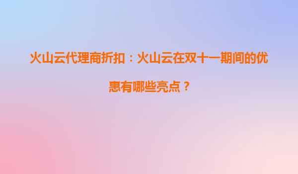 2025-09-19火山云双十一优惠亮点解析:技术赋能+超值折扣双重福利 一、史低价叠加新用户礼包,成本直降50% 今年双十一期间,火山云推出"新注册企业首单5折+满10万赠2万"组合优惠。通过代理商渠道下单还可叠加95...