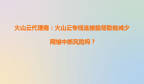 2025-09-19火山云代理商:火山云专线连接能帮助我减少网络中断风险吗? 一、企业面临的网络中断风险挑战 在数字化时代,网络稳定性直接关系到企业核心业务的连续性。无论是金融交易、远程办公还是...