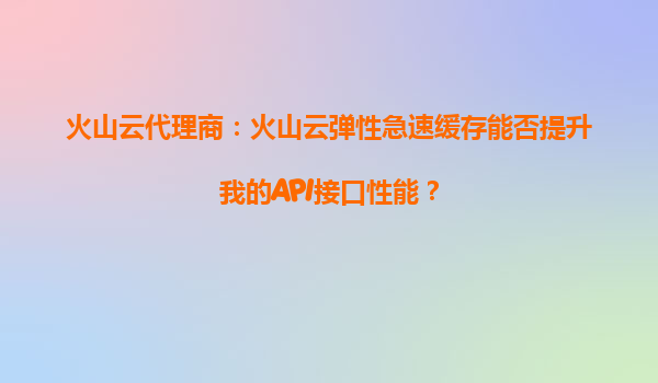 2025-09-19火山云代理商:火山云弹性急速缓存能否提升我的API接口性能? 一、API性能瓶颈与缓存的核心价值 在现代应用架构中,API接口的性能直接影响用户体验和系统扩展性。常见的性能瓶颈包括数据库查...