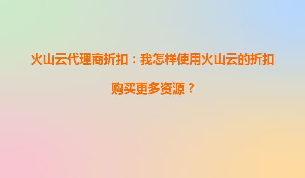 2025-09-19火山云代理商折扣:如何利用折扣优惠购买更多资源? 一、火山云的核心优势 作为全球领先的云计算服务提供商,火山云凭借以下优势成为企业数字化转型的首选: 高性能计算...