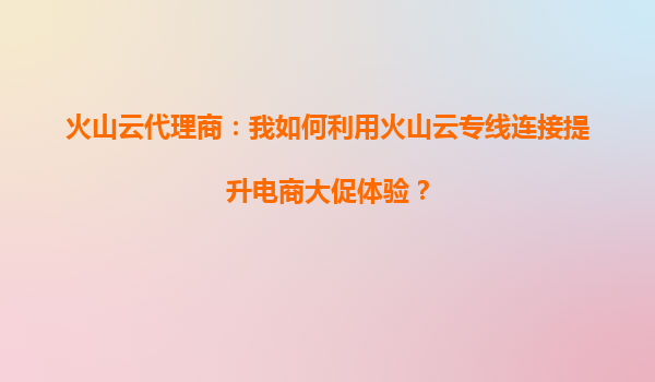 2025-09-19火山云代理商:我如何利用火山云专线连接提升电商大促体验? 一、电商大促的挑战与火山云专线的价值 电商大促期间,高并发流量、订单激增、支付延迟等问题常导致用户体验下降。传统公网因带宽拥堵或跨运营...