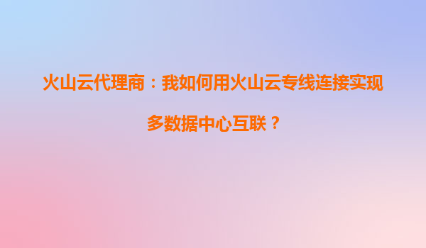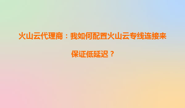 2025-09-18火山云代理商:如何配置火山云专线连接实现低延迟 一、火山云专线连接的核心优势 火山引擎(VolcanoEngine)作为字节跳动旗下的云服务平台,其专线服务具有以下显著优势: 全球骨干网络覆盖:依托...