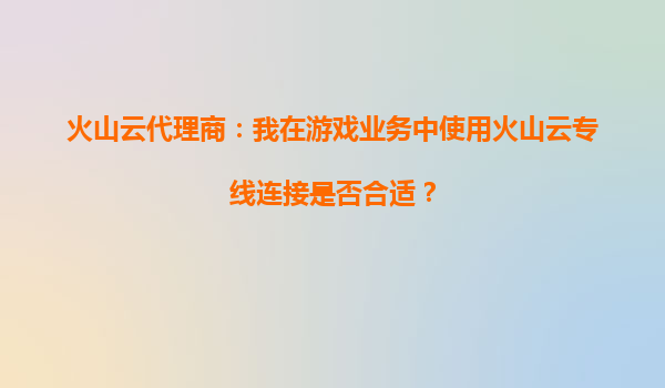 2025-09-18火山云代理商解析:游戏业务使用火山云专线连接的合适性与优势 一、游戏行业对网络连接的特定需求 随着全球游戏市场的持续扩张,玩家对游戏的实时性、稳定性和安全性要求日益提高。多...