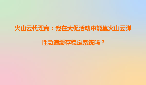 2025-09-18火山云代理商:火山云弹性急速缓存对高并发业务真的有效果吗? 引言 在当前数字化转型的浪潮中,企业对数据处理能力和高并发支撑的需求越来越高。为了满足这一需求,新兴的云服务提供商纷纷推出了高性...
