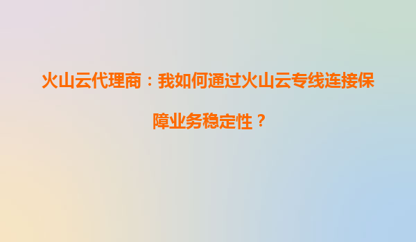 2025-09-18火山云代理商:我如何通过火山云专线连接保障业务稳定性? 一、火山云专线:企业稳定连接的基石 在数字化业务高度依赖网络连接的今天,火山云专线(VolcanoEngineExpressConnect)通...
