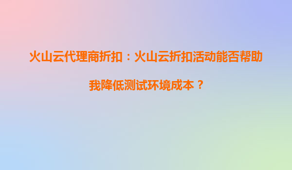 2025-09-18火山云代理商折扣:火山云折扣活动如何助力企业降低测试环境成本? 在当今快速发展的数字化时代,云计算已成为企业IT基础设施的核心组成部分。测试环境作为软件开发周期中不可或缺的一环,其成本控制直接影...