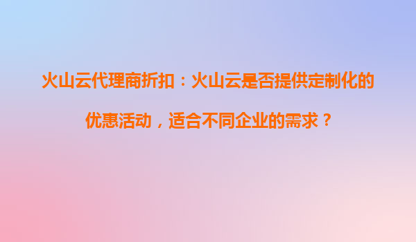 火山云代理商折扣:定制化服务助力企业数字化转型 一、火山云服务体系:灵活高效的云解决方案 作为字节跳动旗下的云计算品牌,火山引擎(VolcanoEngine)通过火山云为企业提供全栈云服务解...