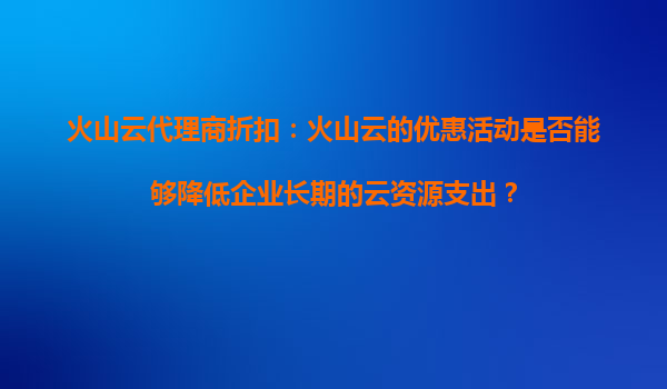 2025-09-16火山云代理商折扣:如何通过优惠活动降低企业长期云资源支出? 一、企业云资源成本的核心痛点 在数字化转型的浪潮中,企业对云计算的需求快速增长,但随之而来的是云资源成本的显著上升。许多企业...