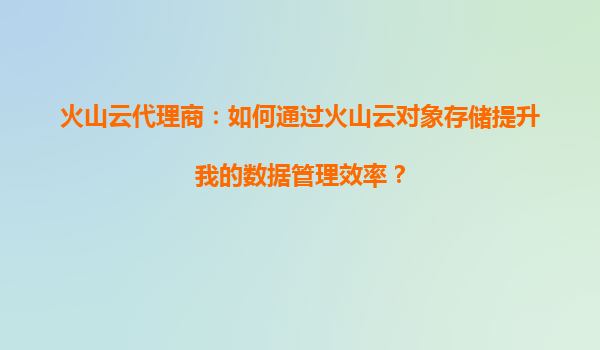 2025-09-16火山云代理商:如何通过火山云对象存储提升数据管理效率? 一、引言:数据管理的时代挑战 在数字化浪潮下,企业数据量呈现爆发式增长,传统存储方式在成本、安全性和扩...