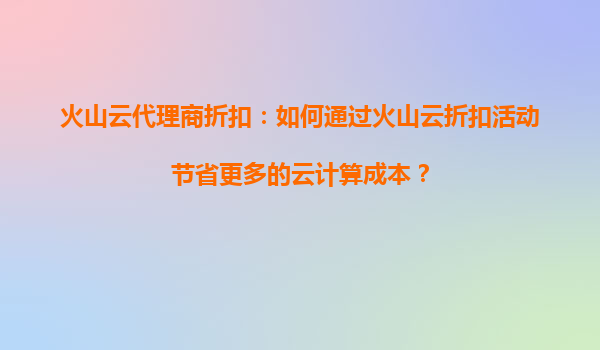 2025-09-16火山云代理商折扣:抓住重磅优惠,抢占云计算先机 一、火山云近期重磅折扣活动盘点 作为字节跳动旗下的云计算服务品牌,火山云近期针对代理商和企业用户推出了系列重磅折扣政策,主要包括: ...