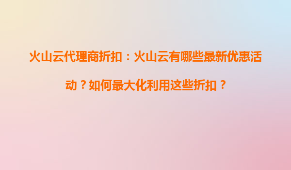 2025-09-16火山云代理商折扣:火山云有哪些最新优惠活动?如何最大化利用这些折扣? 一、火山云的核心优势 在探讨优惠活动之前,首先需要了解火山云的独特优势。火山云是字节跳动旗下的云计算服务品牌,凭借其强大的技术...