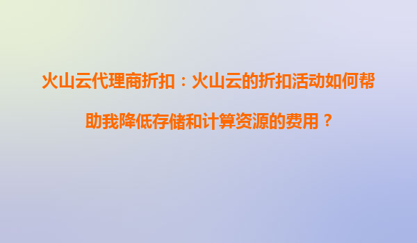 2025-09-16火山云代理商折扣:如何通过折扣活动提升云服务成本控制? 一、引言 在数字化转型的浪潮中,云服务已成为企业降本增效的重要工具。然而,随着业务规模扩大,云服务成本也可能随之攀升。如何有效控制成...