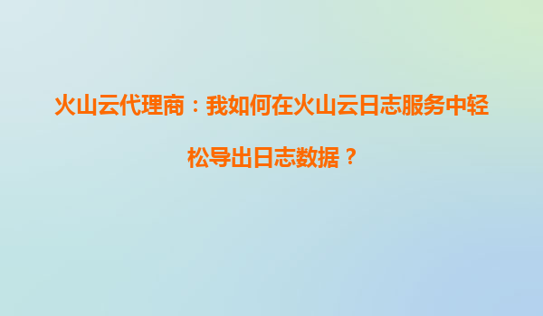 2025-09-16火山云代理商:我如何在火山云日志服务中轻松导出日志数据? 一、火山云日志服务的核心优势 作为全球领先的云计算服务提供商,火山引擎(VolcanoEngine)的日志服务凭借以下核心优势,为企业用户和代理商提供...