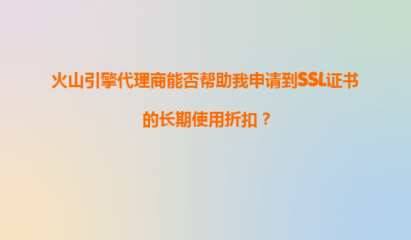 火山引擎代理商能否帮助申请SSL证书长期折扣? 在数字化转型浪潮下,企业网站与业务系统的安全性愈发重要,而SSL证书作为加密传输的基础保障,已成为刚需。许多企业希望通过代理商获得更优惠的长期SSL证书采购方案...