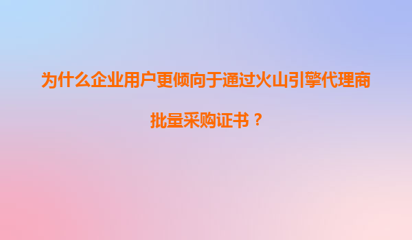 2025-11-11企业用户为何青睐通过火山引擎代理商批量采购证书? 在数字化转型加速的今天,网络安全已成为企业运营的核心需求之一。越来越多的企业选择通过火山引擎代理商批量采购SSL证书等安全产品。这一现象背后,既有成本效...