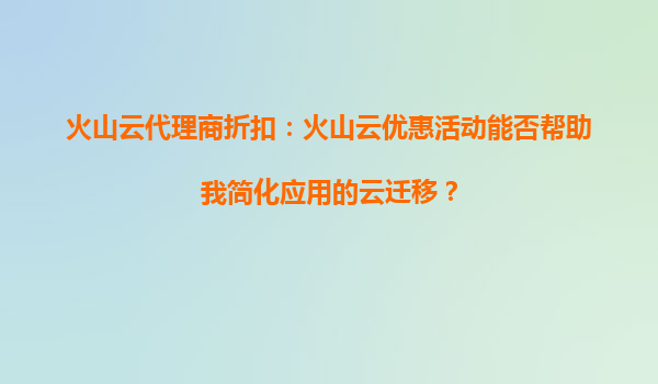 2025-09-16火山云代理商折扣:火山云优惠活动能否帮助我简化应用的云迁移? 一、火山云的技术优势如何赋能云迁移 火山云作为字节跳动旗下的云计算服务品牌,凭借其全球化...