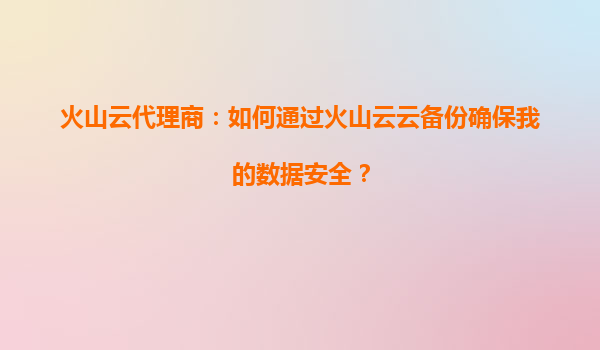 2025-09-16火山云代理商指南:如何通过火山云云备份确保数据安全 在数字化时代,数据已成为企业最宝贵的资产之一。如何确保数据安全、避免丢失成为每个企业必须面对的课题。作为火山云代理商,我们有幸见证了大量企业通过火...