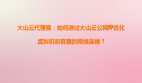 2025-09-16火山云代理商:如何通过火山云公网IP优化虚拟机和容器的网络连接? 一、火山云公网IP的核心优势 火山引擎提供的公网IP服务具备高可用性、弹性扩展和全球覆盖能力,能够有效解决虚拟机和容器网络连...