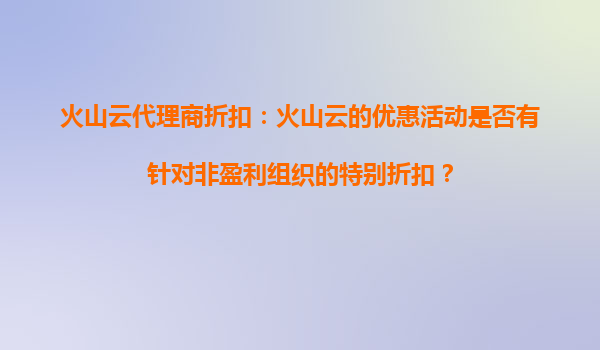 火山云代理商折扣:火山云的优惠活动是否有针对非盈利组织的特别折扣? 一、火山云的核心优势解析 火山云作为字节跳动旗下的云计算品牌,凭借以下优势成为企业数字化转型的重要合作伙伴: ...