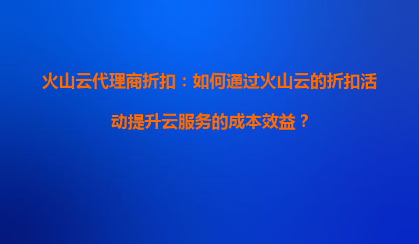 2025-09-16火山云代理商折扣:如何通过火山云的折扣活动提升云服务的成本效益? 引言 在数字化时代,云计算服务已成为企业IT基础设施的核心组成部分。火山云作为国内领先的云服务提供商,以其稳定、安全、高性能的服务赢...