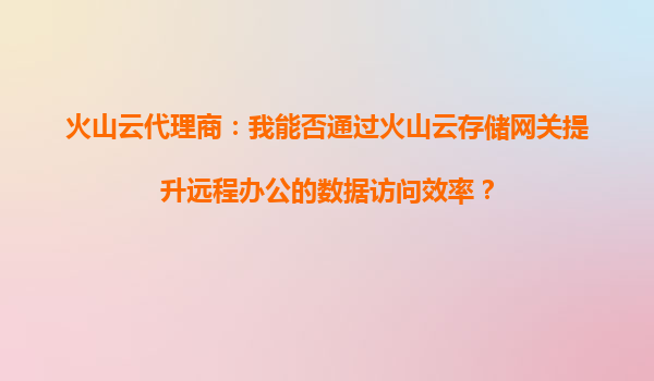 2025-09-16火山云代理商:通过火山云存储网关提升远程办公数据访问效率的可行性分析 一、远程办公的数据访问挑战与需求 随着远程办公成为新常态,企业面临数据访问延迟、协作效率低和安全性不足的三大痛点: ...