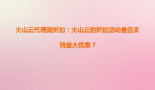 2025-09-16火山云代理商折扣:提升云计算扩展性的高效途径 在数字化转型的浪潮中,企业越来越依赖云计算来支撑业务发展。火山云作为国内领先的云服务提供商,通过丰富的代理商折扣和优惠活动,为各类企业提供了更具性价比...