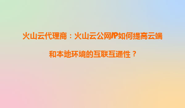 2025-09-16提升云端与本地互联互通性:火山云公网IP的解决方案 云端与本地互联的挑战 在数字化转型过程中,企业常面临云端资源与本地环境协同作业的难题。网络延迟、带宽限制和安全隐患成为关键瓶颈,尤其在需要实时数...