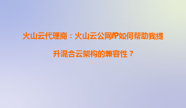 2025-09-16火山云公网IP如何提升混合云架构的兼容性 混合云架构的核心痛点 混合云架构因其灵活性与成本优势成为企业上云的主流选择,但多环境协同下的网络互通、安全管控和资源调度问题也随之凸显。本...