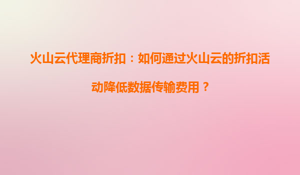 火山云代理商折扣:如何通过火山云的折扣活动降低数据传输费用? 一、引言 在当今数字化时代,数据传输已成为企业运营的核心需求之一。无论是内容分发、云计算还是大数据分析,稳定高效的数据传输服务...