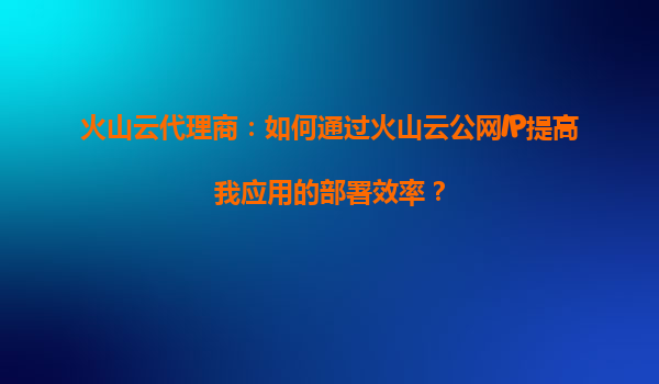 2025-09-16火山云代理商:如何通过火山云公网IP提高应用部署效率 一、引言:数字化转型中的网络挑战 在数字化加速的时代,企业应用部署效率直接关乎业务竞争力。传统部署模式常面临公网IP资源不足、...