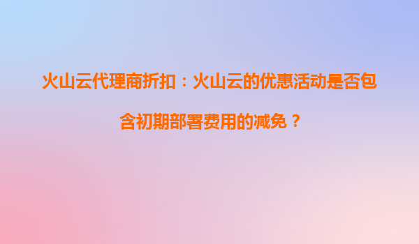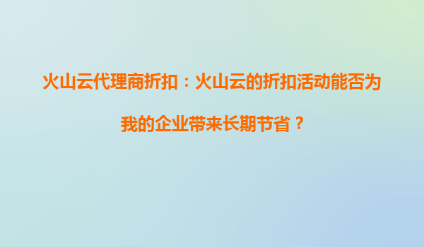 2025-09-16火山云代理商折扣活动:为企业带来的长期节省优势解析 一、引言:企业数字化转型的成本挑战 在数字化浪潮下,云计算已成为企业降本增效的核心工具。然而,高昂的IT基础...