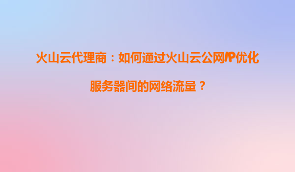 2025-09-16火山云代理商:如何通过火山云公网IP优化服务器间的网络流量? 在当今高度数字化的商业环境中,网络流量的高效传输是企业IT基础设施的关键需求之一。无论是跨国企业还是中小型企业,都需要确保服务器间的通信稳定、...