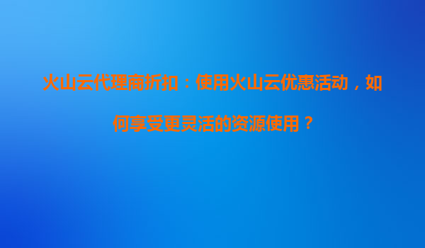 2025-09-16火山云代理商折扣:使用火山云优惠活动,如何享受更灵活的资源使用? 一、火山云的核心优势解析 火山云作为字节跳动旗下云计算品牌,凭借强大的基础设施和技术能力,为用户提供了以下核心优势: ...