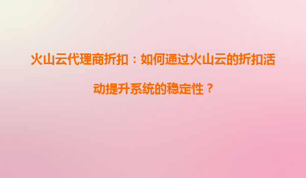 2025-09-16火山云代理商折扣:如何通过火山云的折扣活动提升系统的稳定性? 引言 在当今数字化时代,企业对于云服务的需求日益增长,系统稳定性成为保障业务连续性的关键因素。火...