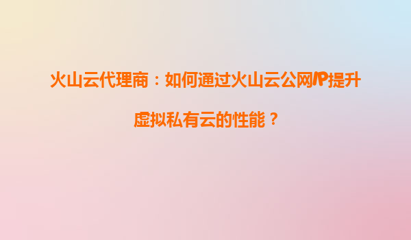火山云代理商:如何通过火山云公网IP提升虚拟私有云的性能 引言 随着企业数字化转型的加速,云计算已成为支撑业务发展的关键基础设施。虚拟私有云(VPC)作为云计算的核心组件之一,为企...