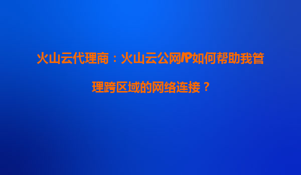 2025-09-16火山云代理商:火山云公网IP如何帮助我管理跨区域的网络连接? 一、跨区域网络连接的挑战 在全球化业务布局的背景下,企业常面临跨区域网络连接的复杂性。不同...
