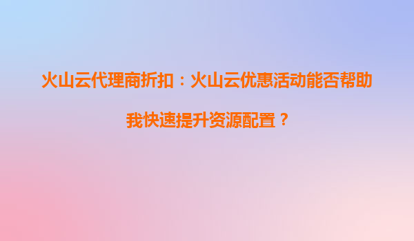 火山云代理商折扣:火山云优惠活动能否帮助我快速提升资源配置? 一、引言:为什么选择火山云? 在数字化转型的浪潮中,企业对云计算的需求越来越大。而在众多云服务提供商中,火山云凭借其强大的基础...
