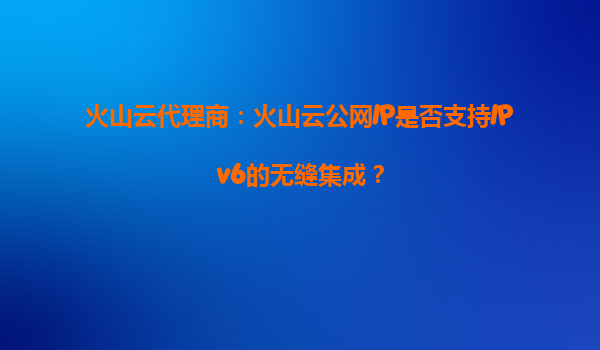 2025-09-16火山云公网IP:开启IPv6无缝集成新时代 数字化浪潮下的IPv6演进趋势 全球互联网正加速向IPv6协议迁移,据权威统计,2023年中国IPv6活跃用户数已突破7亿。火山云作为领先的云计算服务商,其公网IP服务...
