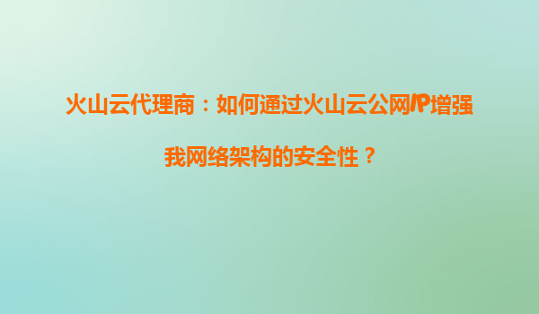 2025-09-16火山云代理商:火山云公网IP如何帮助我提升业务连续性? 引言 在数字化时代,业务连续性是企业运营的核心需求之一,任何网络中断或服务不可用都可能对企业造成重大损失。作为火山云代理商,理...
