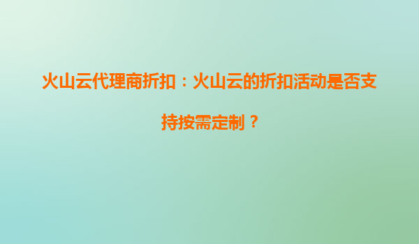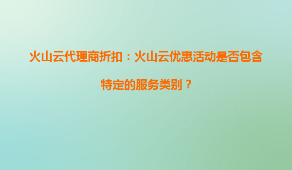 2025-09-16火山云代理商折扣:详解优惠活动及火山云核心优势 一、火山云优惠活动是否覆盖特定服务类别? 火山云作为字节跳动旗下的云计算服务品牌,其代理商折扣及优惠活动通常涵...
