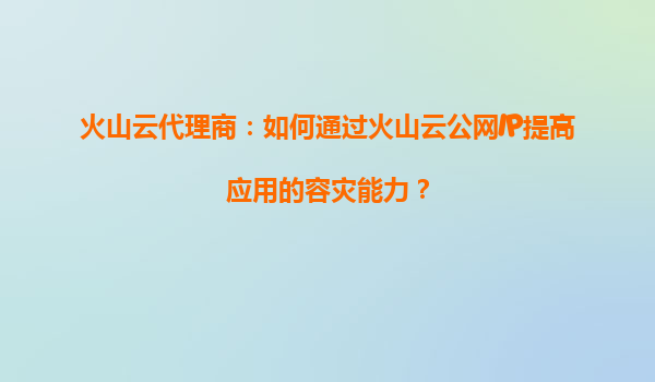 2025-09-16火山云代理商:如何通过火山云公网IP提高应用的容灾能力? 一、火山云公网IP的核心价值与容灾意义 在云计算时代,公网IP不仅是应用对外服务的入口,更是实现高可用架构的关键。火山引擎提供的公网IP服...