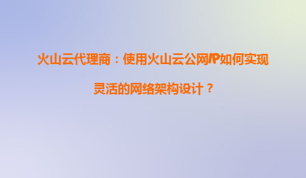 2025-09-16火山云代理商:使用火山云公网IP如何实现灵活的网络架构设计? 一、火山引擎的核心优势与公网IP能力 火山引擎作为字节跳动旗下的云计算服务品牌,其公网IP服务具备三大核心优势:弹性扩展、全球覆盖和智能调...
