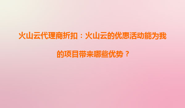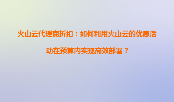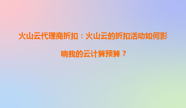 2025-09-16火山云代理商折扣:火山云的折扣活动如何影响我的云计算预算? 引言 云计算已成为现代企业数字化转型的核心基础设施,而成本控制是企业在选择云服务时的重要考量因素之...