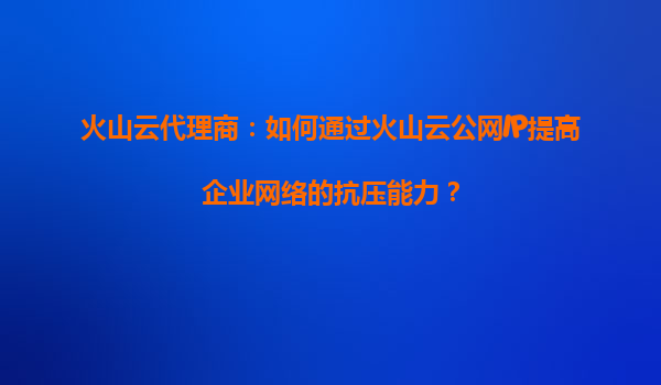 2025-09-16火山云代理商:如何通过火山云公网IP提高企业网络的抗压能力? 1.企业网络抗压能力的核心挑战 在数字化时代,企业业务对网络的依赖程度越来越高。网络的高可用性、稳定性以及安全性直接影响到企业的运营效率和客...