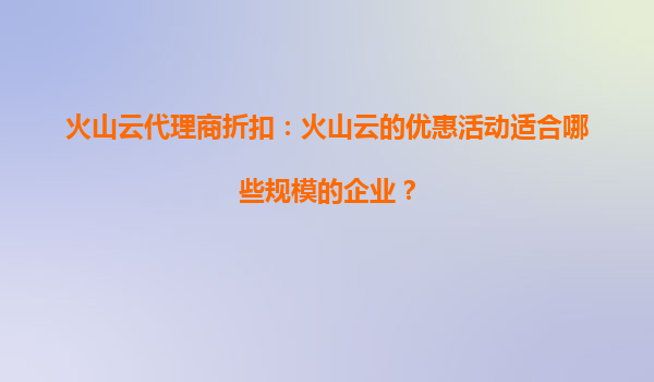 2025-09-16火山云代理商折扣:火山云优惠活动有哪些针对性的折扣方案? 一、火山云的核心优势与代理商价值 火山云作为字节跳动旗下的云计算服务品牌,依托全球分布式基础设施和AI技术能力,提供高...