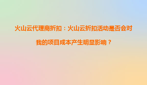2025-09-16火山云代理商折扣:火山云折扣活动是否会对我的项目成本产生明显影响? 一、引言:云计算成本优化的重要性 在数字化转型的浪潮中,云计算已成为企业降本增效的...